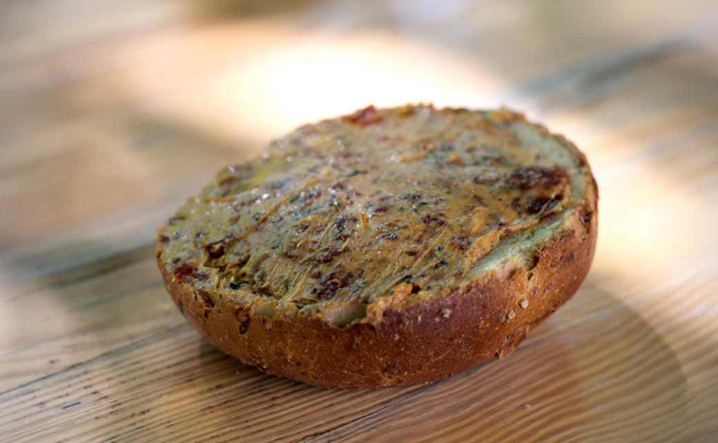 08:29, 29. Jun. 2025 GPN 23 Tomatenbutter 1.jpg (Datei) 383 KB Kasiandra Brötchenhälfte bestrichen mit einer veganer Tomatenbutter 1