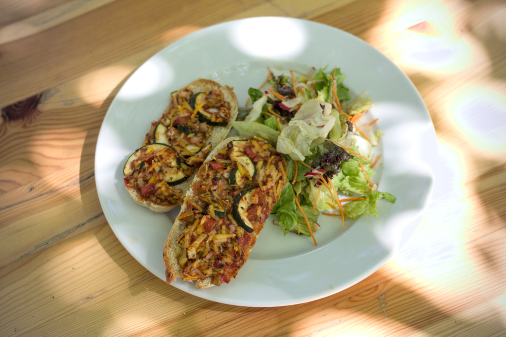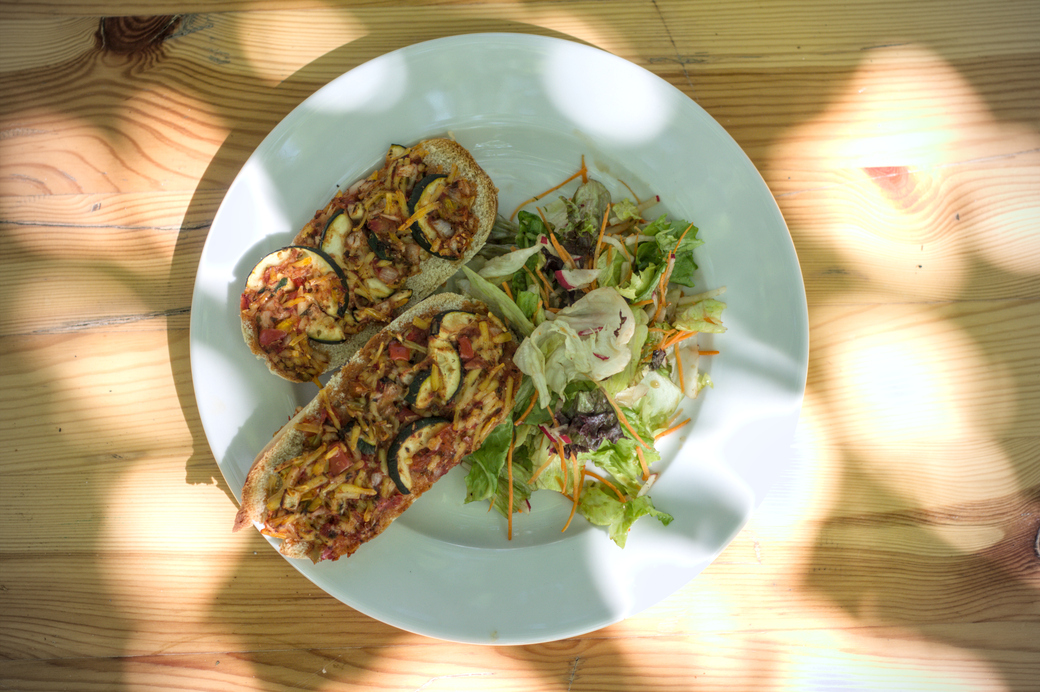 13:59, 28. Jun. 2025 GPN23 Baguette Räuchertofu Käse top.jpg (Datei) 470 KB Kasiandra == Beschreibung == Zwei Hälften eines Baguettes belegt mit Räuchertofu, Zwiebel und veganen Reibekäse. Auf dem selben Teller befindet sich noch ein gemischter Salat. 1