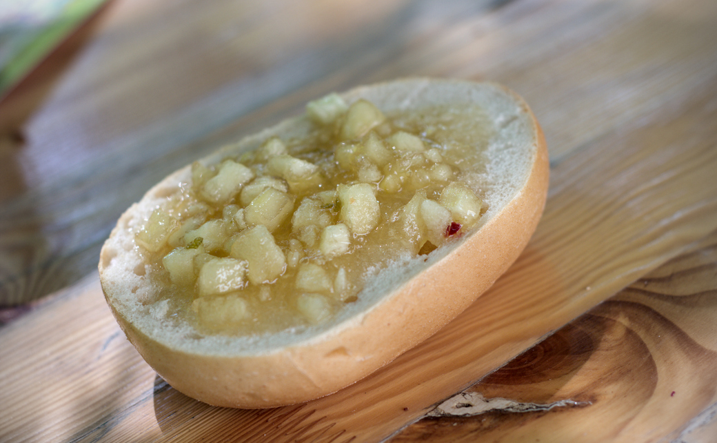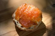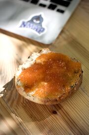 08:25, 29. Jun. 2025 GPN 23 Gulasch Marmelade 1.jpg (Datei) 482 KB Kasiandra Volkorn Brötchenhälfte bestrichen mit Gulaschmarmelade 1