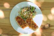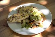 14:36, 28. Jun. 2025 GPN23 Baguette Ofengemüse top.jpg (Datei) 523 KB Kasiandra Aufbackbaguetts mit Ofengemüse auf einem Teller auf dem sich ebenso ein Beilagensalat befindet. 1